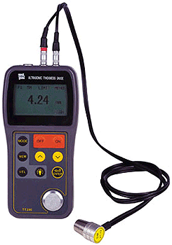 超聲波測量厚度的原理與光波測量原理相似,探頭發(fā)射的超聲波脈沖到達被測物體并在物體中傳播,到達材料分界面時被反射回探頭,通過精確測量超聲波在材料中傳播的時間來確定被測材料的厚度。